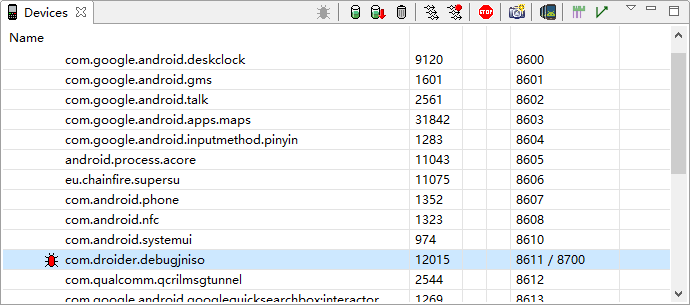 其中 xxx 就是我们在 ddms 看到的 8700 端口,一般默认就是这个。执行之后