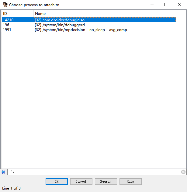如果最后出现只有一个程序 /bin/sh 可以被 attach,那说明没有以 root 权限运行 android_server 程序。