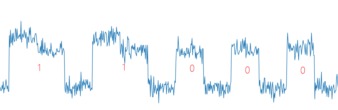 由于网站只给出了一条能量迹,所以可以断定这是 Simple channel analysis(SPA)攻击。那么我们可以直接通过观察能量迹的高低电平来获得 RSA 解密过程的密钥 d。 RSA 可被 SPA 攻击的理论基础来自于 RSA 中包含的快速幂取余算法。