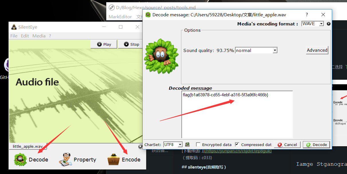 类似于图片隐写中的 LSB 隐写,音频中也有对应的 LSB 隐写。主要可以使用 Silenteye 工具,其介绍如下: