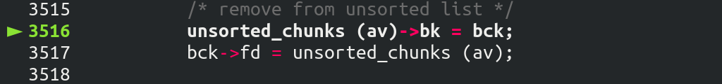 这个原本的意思是把从 unsorted bin 中来的 chunk 插入这个序列中,但是这里没有检查合法性。这里存在这一个利用: