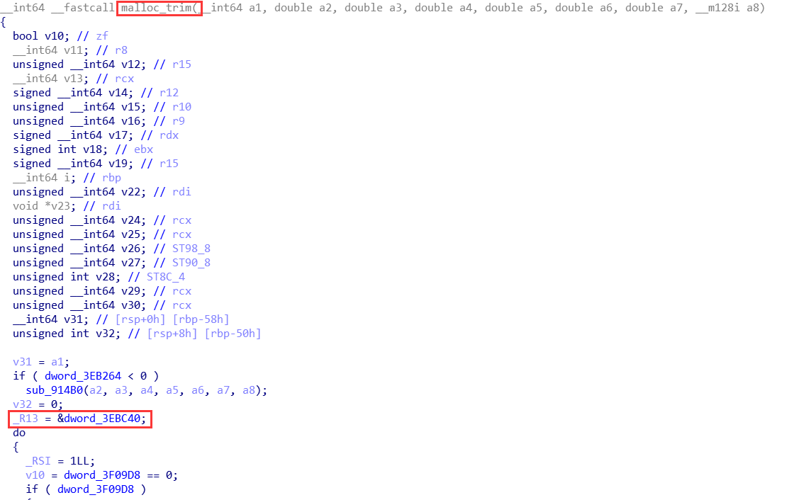 比如把 .so 文件放到 IDA 中,找到 malloc_trim 函数,就可以获得偏移了。