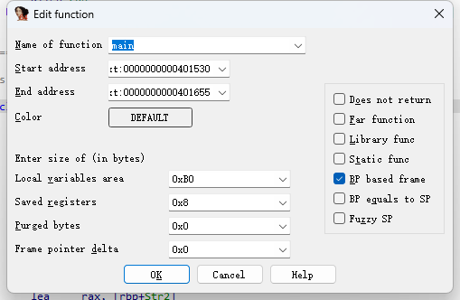 当我们完成对函数识别的修复之后,我们可以在函数开头按下 p 让 IDA 重新自动识别函数,或是框选属于该函数的汇编代码之后再按下 p 让 IDA 重新自动识别函数: